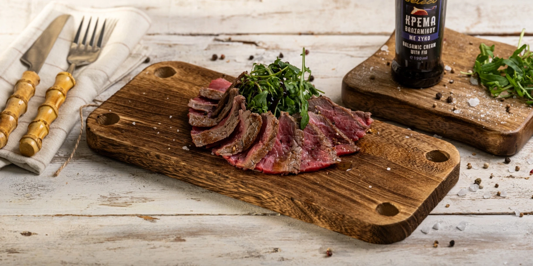Ένα αυθεντικό βαλσάμικο ξίδι που παρασκευάζεται από συμπυκνωμένο μούστο σταφυλιών και σιρόπι χουρμά, χωρίς την προσθήκη ζάχαρης και τεχνητών συστατικών.