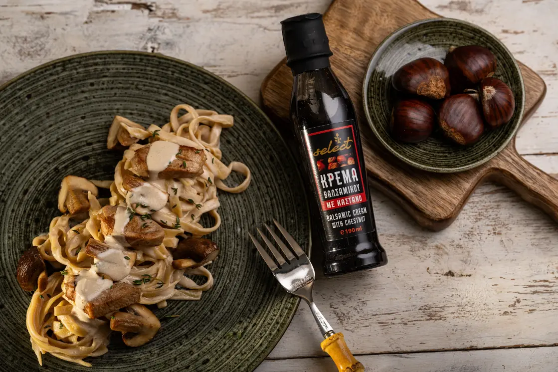 Ποιότητα: Μία αξεπέραστη, βελούδινη και κρεμώδης εκδοχή του κλασσικού βαλσαμικού ξιδιού, που παρασκευάζεται από συμπυκνωμένο μούστο σταφυλιών και κάστανο, χωρίς τη προσθήκη ζάχαρης.