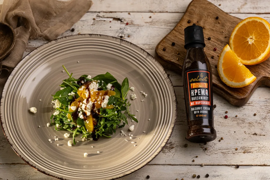 Ποιότητα: Μία αξεπέραστη, βελούδινη και κρεμώδης εκδοχή του κλασσικού βαλσαμικού ξιδιού, που παρασκευάζεται από συμπυκνωμένο μούστο σταφυλιών και χυμό πορτοκαλιού, χωρίς την προσθήκη ζάχαρης.
